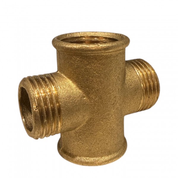 Хрестовина латунна рівнопрохідна, має внутрішню та зовнішню різьби. Використовується при приєднанні, перетині, розводці різних систем трубопроводу. Застосовується в системах подачі води, газу чи пари.