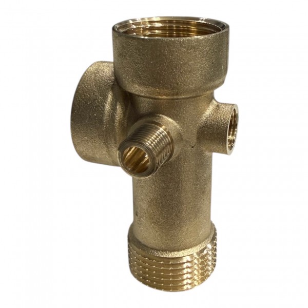 Підключення включає різьбове з'єднання насоса до нижньої частини, реле тиску і манометра до бічних патрубків, гідроакумулятора до верхнього і вихідну трубу до останнього патрубка, з обов'язковим застосуванням ущільнювальних матеріалів ( фум- стрічка, пакля) для герметичності.