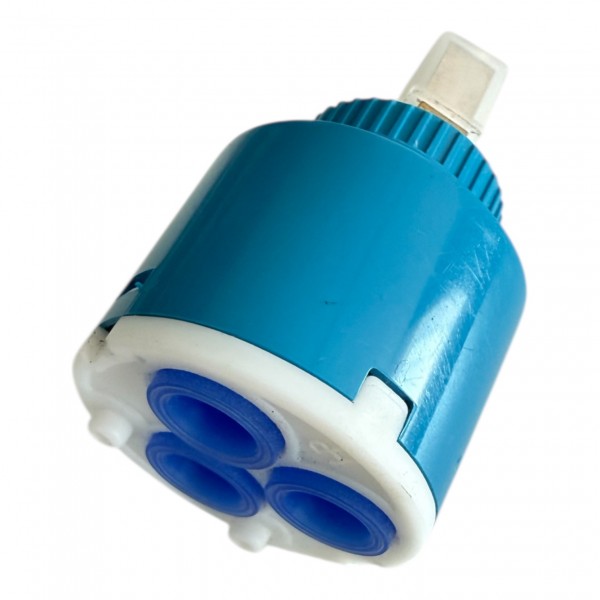 Картридж для змішувача представляє собою запірний клапан, виготовлений в формі конструкції з двома ковзкими керамічними пластинами - шайбами, які мають високу зносостійкість та стійкість до температур.