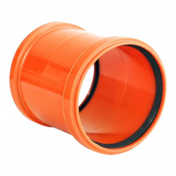 Муфта представляє собою сполучний фітинг зовнішньої каналізації для труб одного діаметру, за допомогою якого збільшують довжину трубопроводу. З'єднується муфта розтрубним способом. Виготовлена з полівінілхлориду, стійка до корозії та перепаду температур.